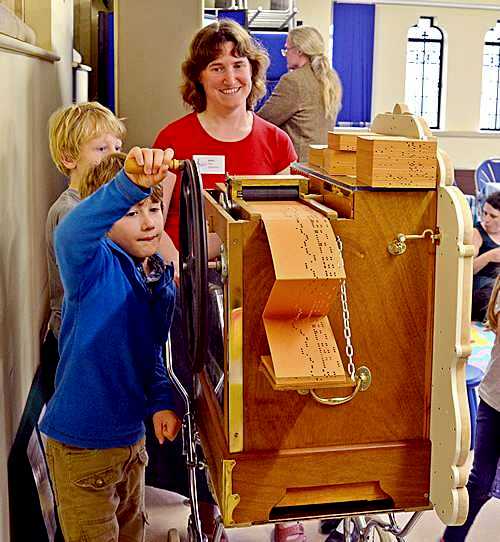 The original idea for this organ was born in Pembroke Dock in 1991 and 1992 when we were borrowing back organs (Heller Stern and the Cabinet Organ) we had sold, to play at various events including the Great Dorset Steam Fair, and the Tall Ships Race when it visited Milford Haven. In the spring of 1992 our street organ friends in south Wales all visited us and played their little street organs in the local park. We wished we had a small organ to play with them too. I started developing the scale of the organ at that time. We ordered 20 keyless music stencilled but not cut, onto card that was wide enough for the enlarged scale so we could modify it ourselves.