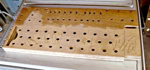 The top picture here shows one of the ply layers being jig-sawn after the initial positioning holes were drilled.
