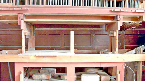 As I worked I made notes of what needed improvements when the time came to re-assemble the organ. The first item was that missing stop-head. Second was the lean-to-the-right appearance of the entire organ – not good for the pipes or aesthetics.