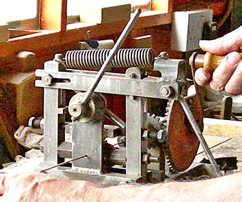 Now came the job of restoring all the stickers and trackers. They are fitted with guide pins or threaded wires at their ends, which were all replaced by new, made from phosphor-bronze. All metal-only pull-down wires were re-made from phosphor-bronze wire, and threaded on my thread-rolling machine. This doesn’t cut the thread, but rolls it between hardened die wheels, so no metal is lost.