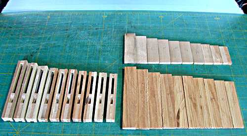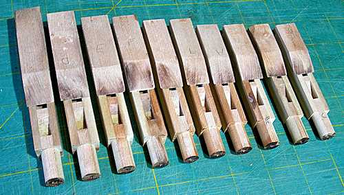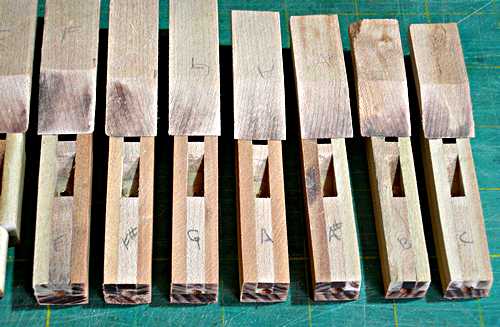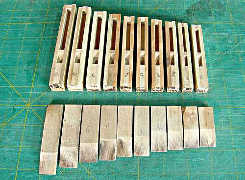 enough.Pipe scaling was accomplished using my scale chart on an Excel spreadsheet. I programmed the original many years ago on a Casio pocket computer, now donated to the National Computer Museum in Bletchley. The scale progression from the largest to the smallest pipe is approximately half-size every 16 notes for the width and half-size every 12 notes for length. Every pipe has unique dimensions (paired for the two ranks of bourdons).