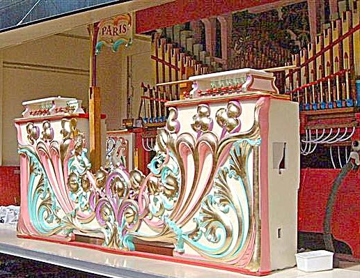 Once I had finished the violins, the clarinet reed pipes followed. These are located in front of the violins, on their own riser. The riser itself hides the lever action below the violin chest and the bandmaster tubing. This latter fits onto small pieces of brass tube running through the riser so fitting the bandmaster is a simple matter.