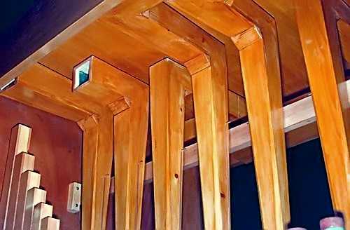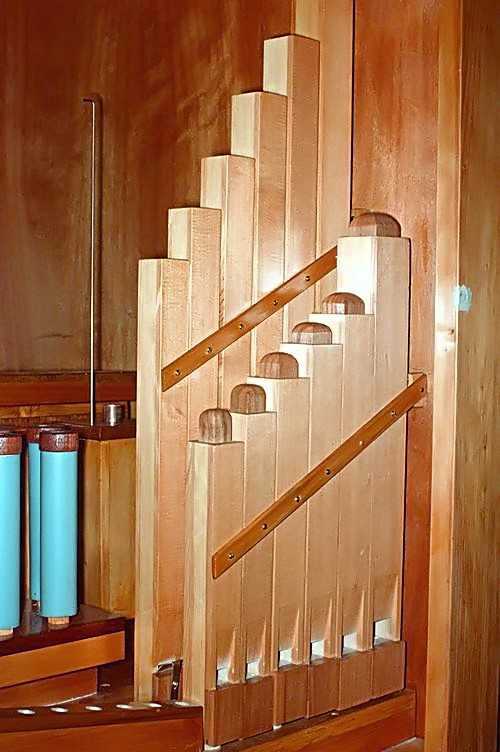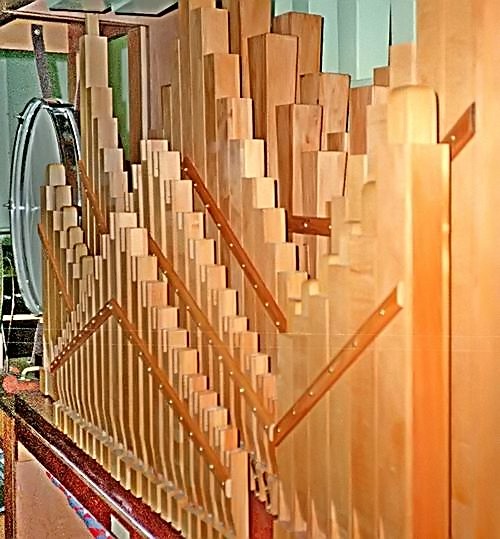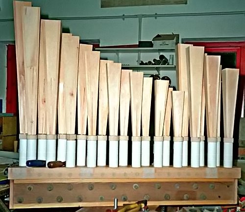Working between our overhaul jobs the project gradually evolved. Judith suggested getting someone she knew in the Netherlands to make the pipes, as neither of us had made flue pipes before, although I had had some experience with reeds. She got in touch with him, and a deal was struck for all the flue pipes we needed except for the largest basses. Those would be made by modifying old church organ pipes we happened to have in storage - old seasoned timber is far better for working with for organ action and parts.